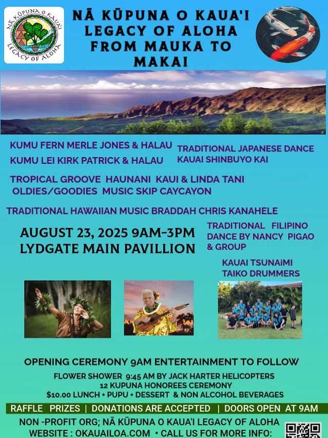 Nā Kūpuna O Kauaʻi invites you to gather with us in honoring the elders who shape our lives and carry the stories of our island. Through hula, music, chant, and cultural sharing, we walk together — from mauka to makai — in gratitude and unity.